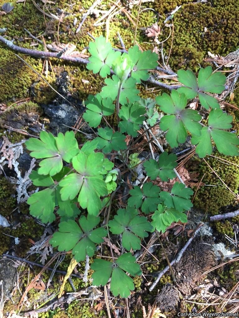 Garden Uses: The plant will self seed under a rock down a garden path, and likes rocky low soil habitats in some areas. The plant will morph according to the conditions that the habitat allows, growing to less than 5 cm in impoverished growing conditions on alvars, or to sometimes even 1 metre tall in more fertile garden conditions. Columbine seeds itself readily, and the leaves of next year's plants come up in the fall of the year before. As columbine has a taproot (root that extends far down into the soil as an adaptation to drought), it is best to transplant columbine when small when they have a smaller root system, and trying to get as much of the taproot as possible. (Evergreen) The seeds need light to germinate (Lorraine Johnson, The New Ontario Naturalized Garden).