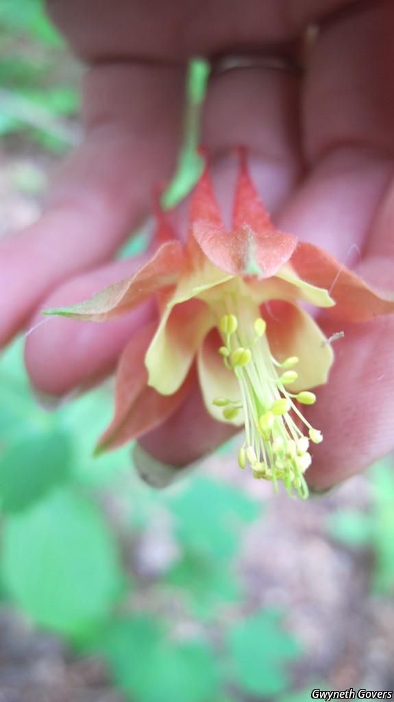 Habitat Information: This plants is present in many habitats such as open woods, sides of roads, and fields, but is also a common alvar plant. Columbine appears in alvars on the Bruce Penninsula and in other alvar areas in southern Ontario, such as the Carden alvar. In alvar conditions, the plant is well adapted to live in tiny divots in rock, with barely any soil. In gardens, it also seems attracted to living in, around and under rock. Red and yellow flower hang down with five spurs pointing upwards appear in April to June and attract hummingbirds, and bees.