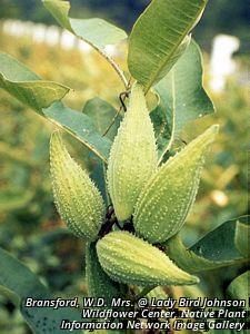 The name milkweed refers to the milky white sap, which contains bitter chemicals to protect the plants from predators. A few insects are immune to these poisons and accumulate them in their bodies, protecting themselves from their own predators. Monarch butterflies cannot complete their life cycles without milkweed. (Kershaw)