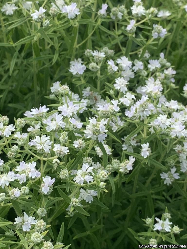 Garden Uses: This plant is rather aggressive in gardens, less so in dry soils. Delicate white flowers are attractive, long lasting, and very aromatic. They have small lance shaped leaves on many branched square stems. Attracts butterflies. (Johnson, L., 100 Easy To Grow Native Plants, 1999)