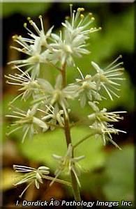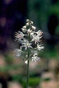 Garden Uses: Foam flower is an early bloomer like many shade loving perennials, and has evergreen leaves that are often quite hairy, and sometimes have discreet purple flecks. Foam flower usually lives in moist or wet woodland areas, however in gardens, it seems to tolerate a wide variety of moisture levels. It is happy in light to deep shade. It spreads very well, and can create a wonderfully weed free and successful groundcover occupying large areas. It is a very showy for a woodland perrenial, with delicate foamy white bottle brush shaped flowers. It is one of the most useful and beautiful plants in a woodland garden. (Evergreen)