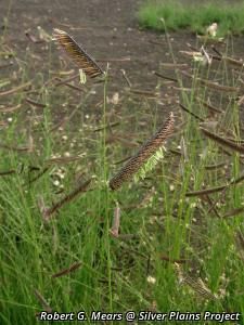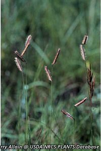 Densely-tufted grass with bluish-green leaves. It has comb-like seed heads which hang to one side. (Dodd)