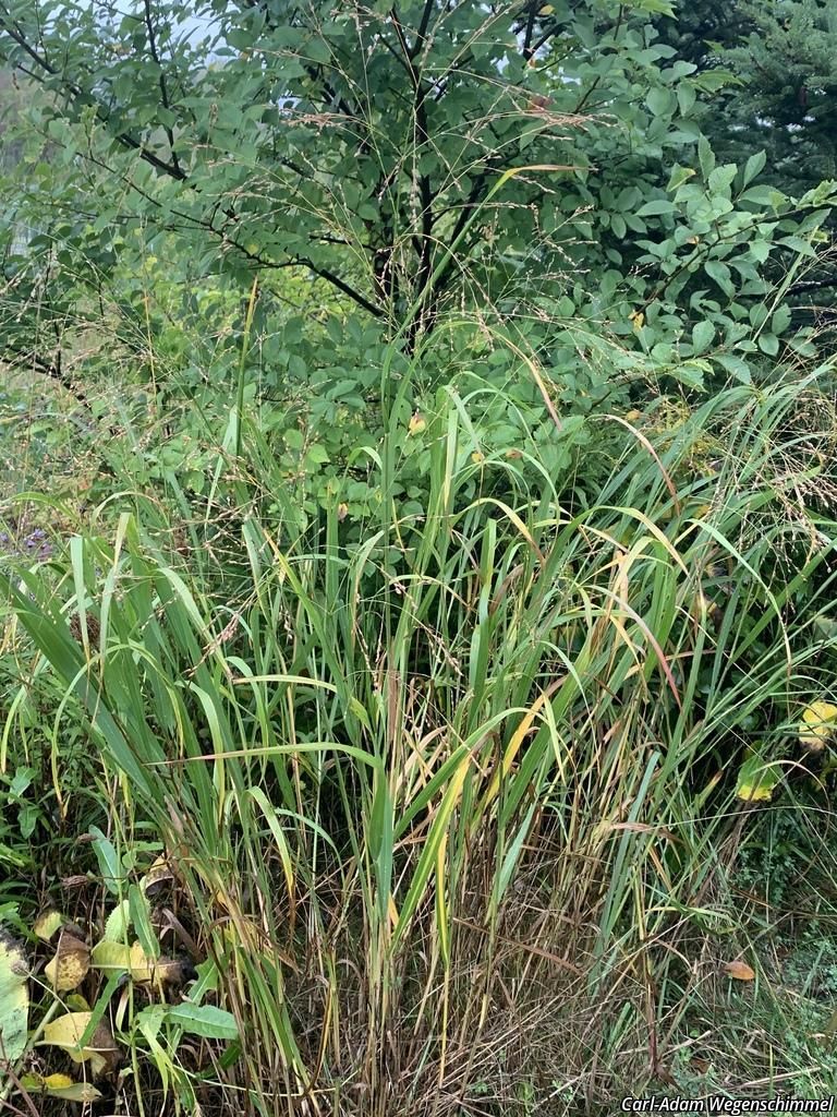 Switchgrass has attracted attention as a fiber source for biofuel because it will typically result in lower ash content that other fiber sources. Since it is native, switchgrass is resistant to many pests and plant diseases, and it is capable of producing high yields with very low applications of fertilizer. Good forage for cattle. (Switchgrass Profile) Switchgrass is also very tolerant of poor soils, flooding and drought, which are widespread agricultural problems in the southeast. (Switchgrass Profile) Habitat Information: This is a core Tall Grass Prairie indicator species. Virgatum the Latin name of this plant, means wand like. (Tall Grass Ontario) Switch grass is an easy plant to grow in that it is suitable for marshy to dry conditions. The roots of this plant can grow more than 10 feet long, like many prairie plants in adaptation to drought. (Minnesota Department of Natural Resources) It is also found in open pine and oak woodlands and brackish marshes along the Maritime coasts. (USDA PLANTS) Seeds are eaten by many birds, including wetland, upland, and songbirds. Rabbits, small mammals including muskrat eat the foliage when in wetlands. Deer, horses, cattle, sheep, and goats eat young foliage. (Illinois Wildflowers) Garden Uses: Also called panic grass, it can be aggressive. It has a tough root system. (Rhynard, G., as cited in Johnson, L., The New Ontario Naturalized Garden, 1999) It is a tall species with a panicle of small seeds, like thousands of buzzing insects, in a slightly diamond shaped, large flower head, a great plant pairing for modern architectural gardens. This showy grass is already well used in gardens, with many hybrid versions of different colours and sizes of the plant being created. (Evergreen) Insect Relationships: This record is for switch grass and other Panicum spp. (panic grasses): Skippers Atrytone logan (Delaware skipper), Hesperia leonardus (Leonard's skipper), Hesperia sassacus (Indian skipper), Poanes hobomok (Hobomok skipper), Polites themistocles (tawny edged skipper), and Wallengrenia egremet (northern broken dash). Moth caterpillars Cycloplasis panicifoliella. Leafhoppers for switch grass include various Flexamia spp. and Graminella spp. (Illinois Wildflowers) Because switch grass remains upright during the winter and often forms large clumps, it provides good cover for various birds and small mammals during this time of year. Edible, medicinal uses: There is little information about switch grass for edibility or medicinal uses (Evergreen) Green Roof: This drought hardy plant has been grown in soil levels 5 inches and up with good results. (Evergreen)