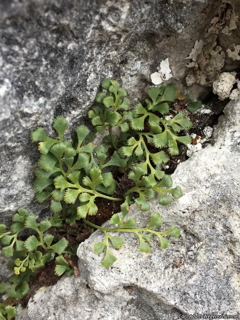 True to its name, wall rue almost always grows on vertical rocky surfaces. (Connecticut Botanical Society)
