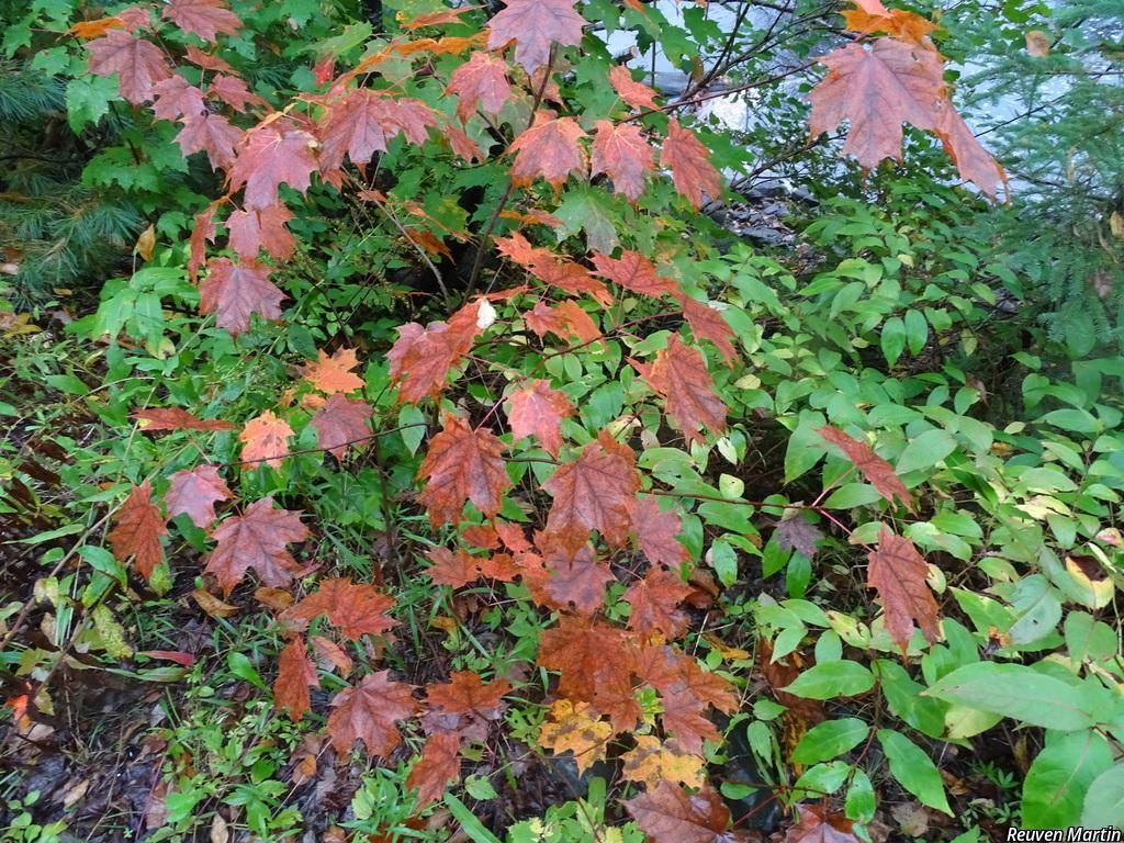 The leaves have 5 taper pointed lobes of a deep yellowish-green which becomes brilliant orange or bright red in the Fall.