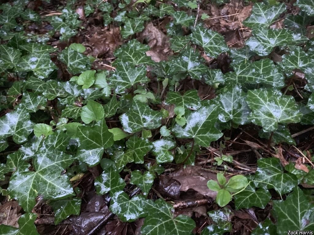 ECOLOGICAL THREAT: English ivy is an aggressive invader that threatens all vegetation levels of forested and open areas, growing along the ground as well as into the forest canopy. The dense growth and abundant leaves, which spring from the stems like small umbrellas, form a thick canopy just above the ground, and prevent sunlight from reaching other plants. Similarly, vines climbing up tree trunks spread out and surround branches and twigs, preventing most of the sunlight from reaching the leaves of the host tree. Loss of host tree vigor, evident within a few years, is followed by death a few years later. The added weight of vines makes infested trees susceptible to blow-over during storms. English ivy also serves as a reservoir for Bacterial Leaf Scorch (Xylella fastidiosa), a plant pathogen that is harmful to native trees such as elms, oaks, and maples. English ivy is a popular plant, still recommended by many for use as a low maintenance alternative to lawns. It is widely used by those wanting a low maintenance, evergreen groundcover. Once established at a site, English ivy can be expected to invade neighboring yards, parks and other lands, either by vegetative means or by seed.